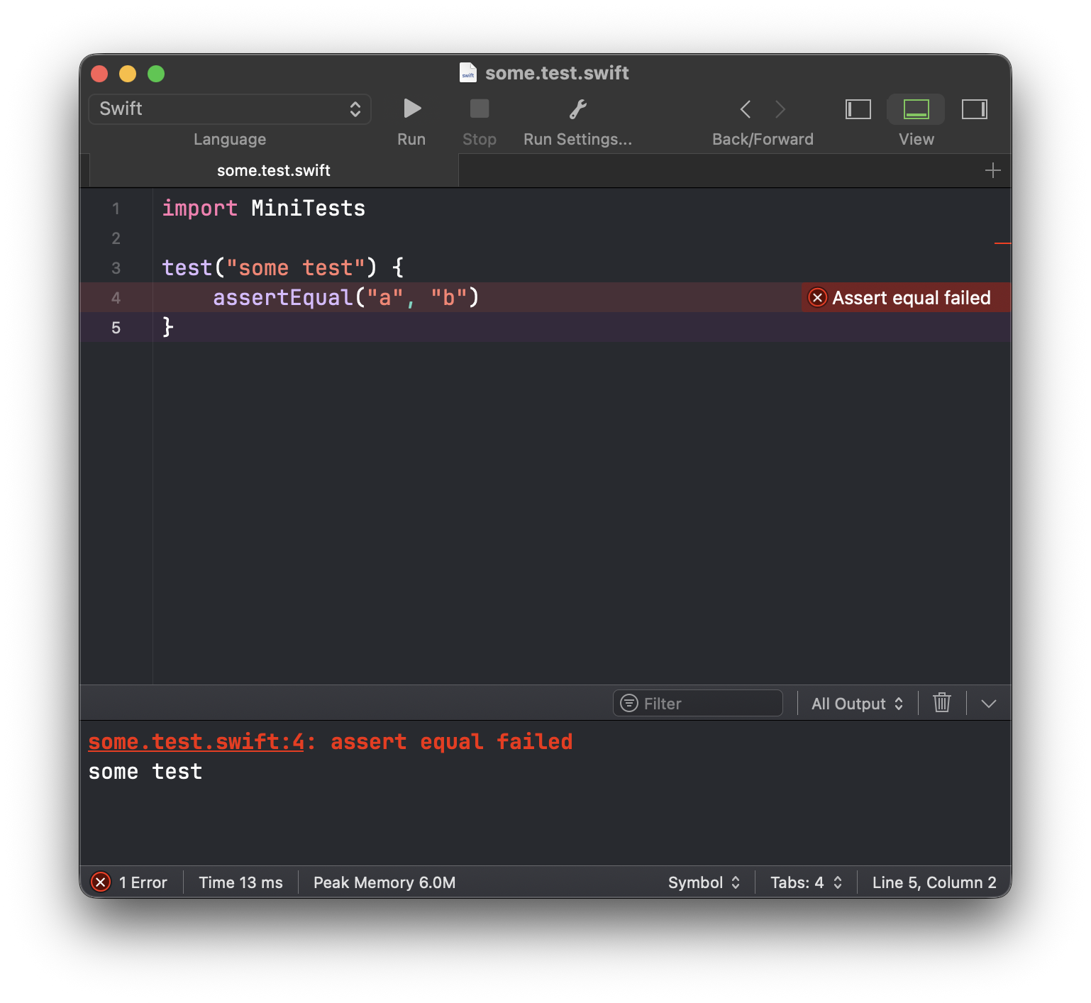 Xcode is heavy and brings baggage that becomes noise in these early stages of a project, so I usually start with a single file and a lightweight environment like CodeRunner or Neovim, but something I miss is having a testing environment.